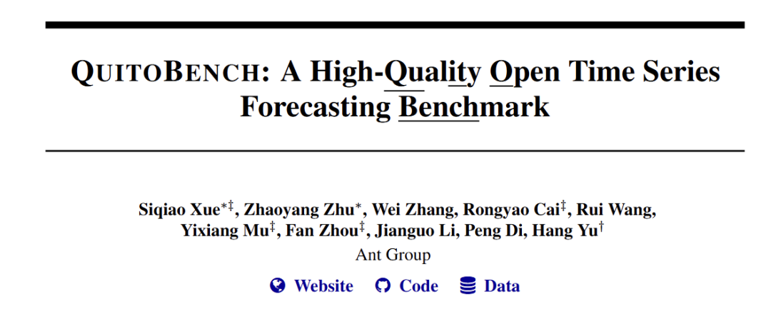 TL;DR:蚂蚁集团(支付宝)针对时间序列预测缺乏优质统一基准的问题,提出 QUITO(十亿级数据集)与 QUITOBENCH(TSF 八类均衡基准),解决了旧基准分类粗、分布偏、有泄漏等缺陷,通过实验给出模型选择指南,为该领域提供可靠评测工具。