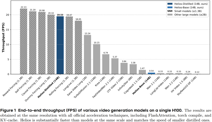 北京大学、字节跳动、Canva 以及成都阿努智能的研究团队联合重磅推出了全新的大模型 —— Helios 。这是业界首个能够在单张 NVIDIA H100 GPU 上,以惊人的 19.5 FPS 实时运行的 14B 视频生成大模型 !