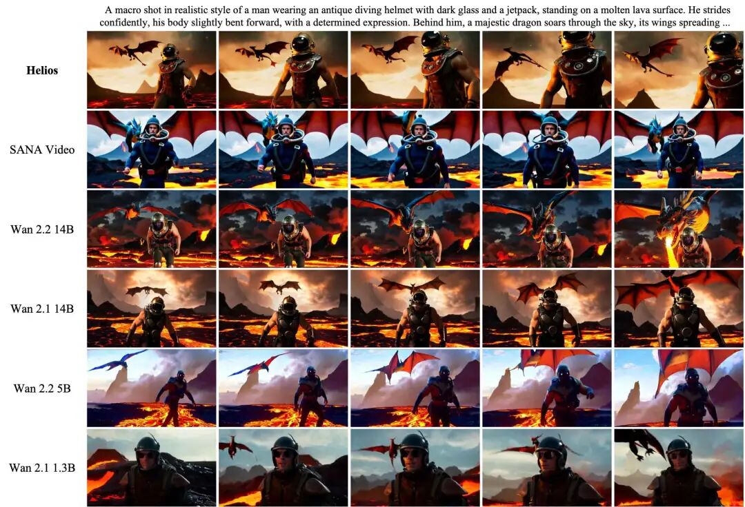 而 Helios 带着 14B 的庞大参数量,硬生生地在三个关键维度实现了突破:
