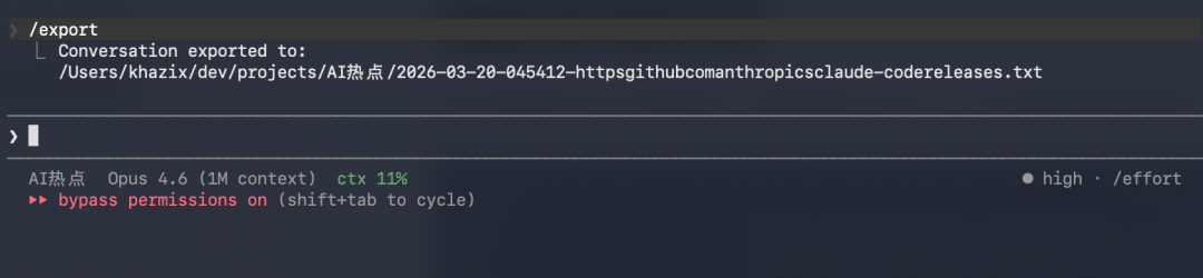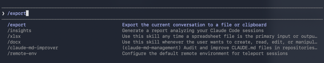这个命令很简单,打/export,当前的整段对话就会被导出成一个Markdown文件。