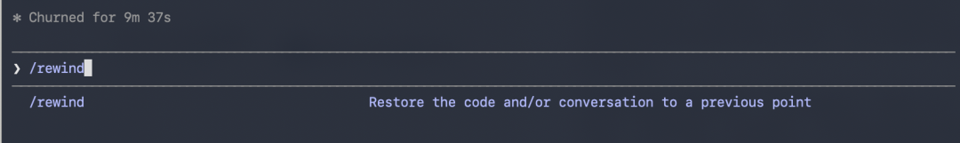 比如我现在我开发了一个功能,我觉得不好,想撤销,我就可以先打/rewind,然后把这个会话里面的历史拽出来。