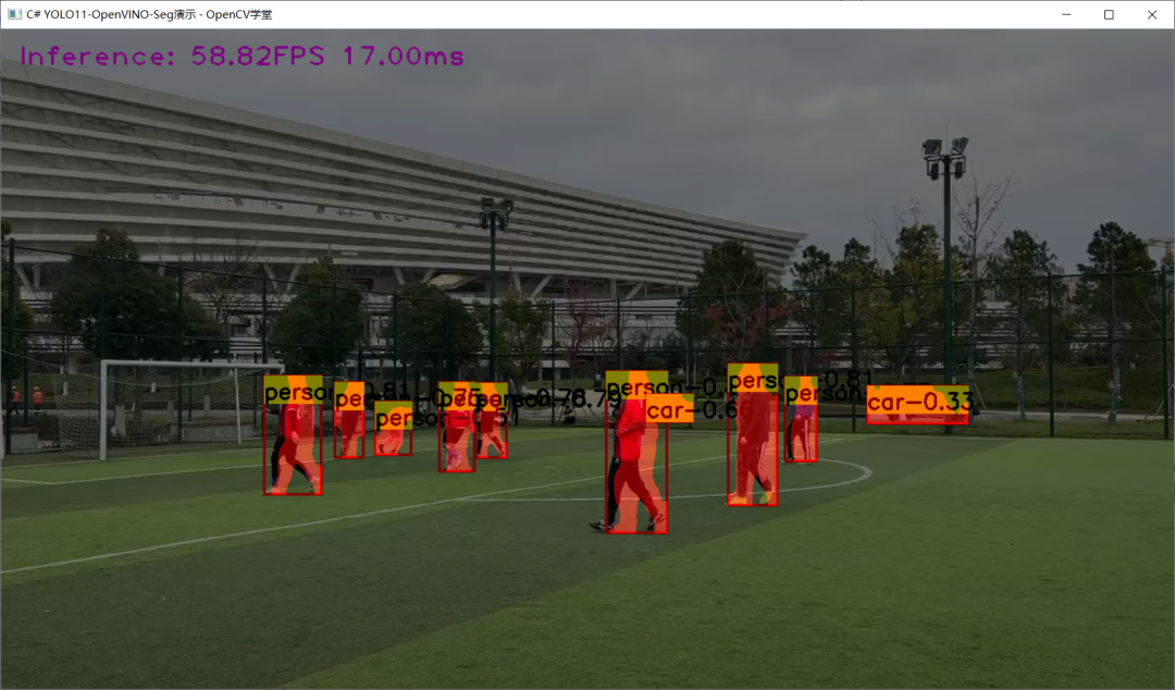 Cv2.ImShow("C# YOLO11-OpenVINO-Seg演示 - OpenCV学堂", frame);