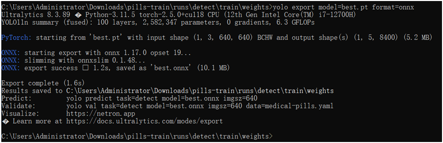 yolo export model=best.pt format=onnx