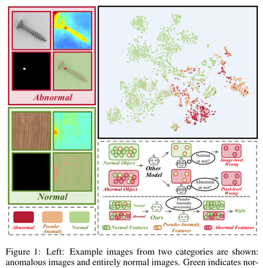 其次,伪异常意识记忆模块实现了双存储库架构,包括特定于背景的和综合的存储库。通过系统化的数据增强和战略核心集采样,该模块促进了背景特征和异常模式之间稳健的区分。这种架构设计有效地实现了特征解纠缠,增强了系统从环境变化中隔离真缺陷的能力。