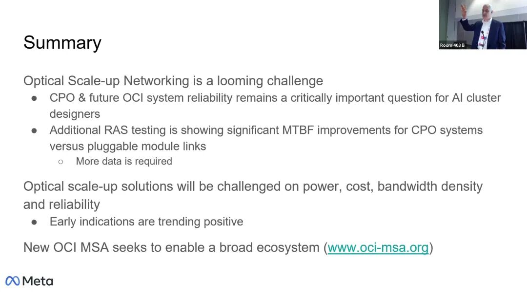 3. 针对观众提出的“是否有LPO模块的相关测试数据”问题,Meta回应称,目前暂无LPO模块的相关测试数据可以分享,这也是团队后续重点关注的测试方向,后续有进展会同步向行业更新。