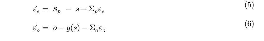 同样,与预测编码类似,生成模型的反转是通过对变分自由能关于状态进行梯度下降来实现的。忽略常数项,方程8给出了边缘自由能梯度的表达式。