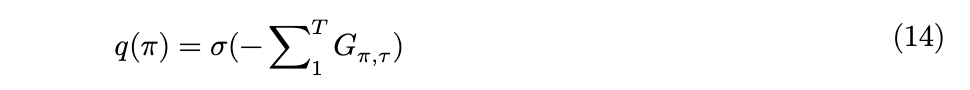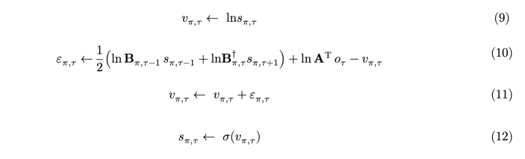 那么,针对单时间步策略的策略后验,就是期望自由能的一个简单 softmax 函数(方程14),这有效地将期望自由能转换为一个概率分布,下一个动作可以从该分布中采样得到。