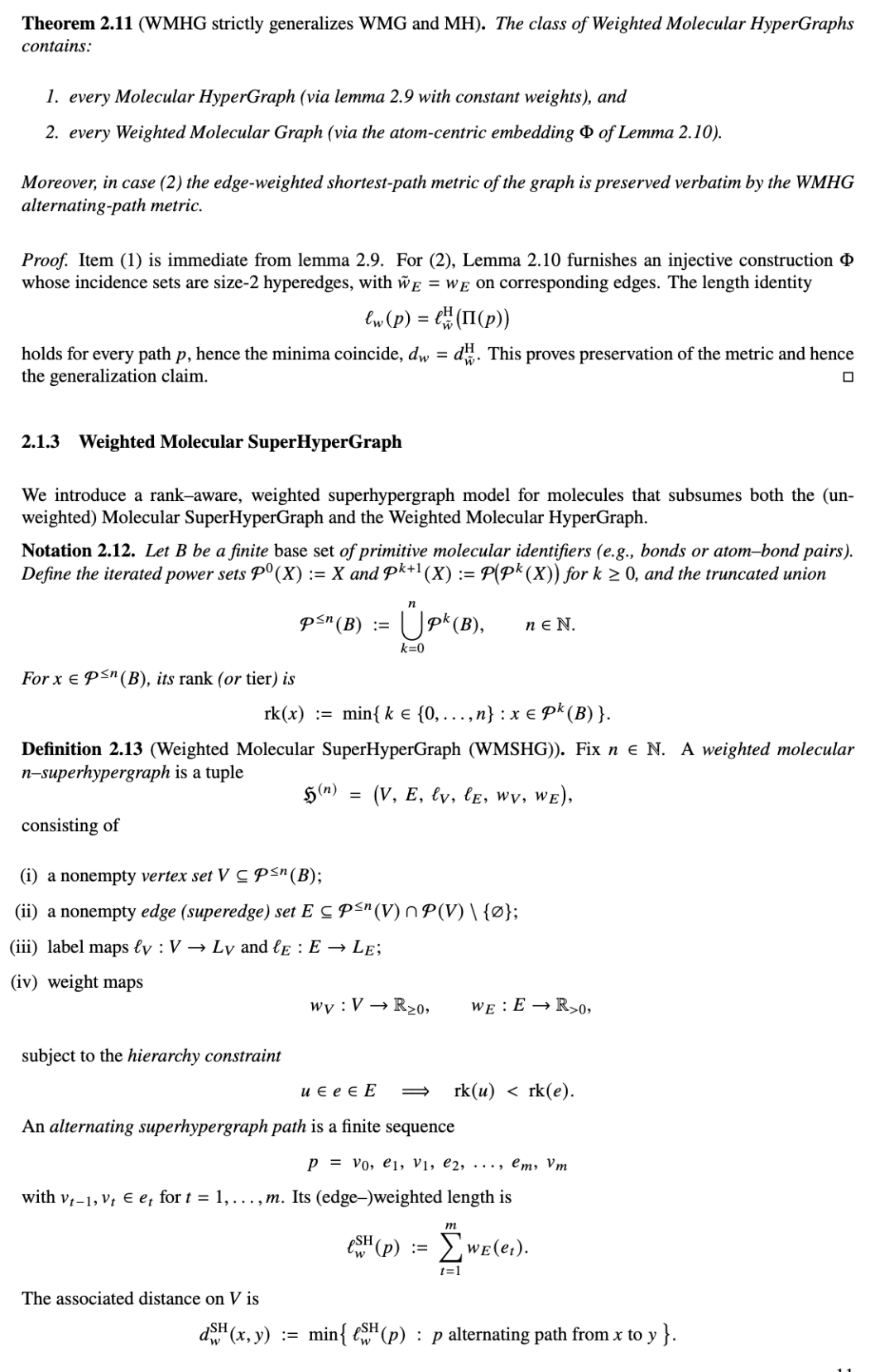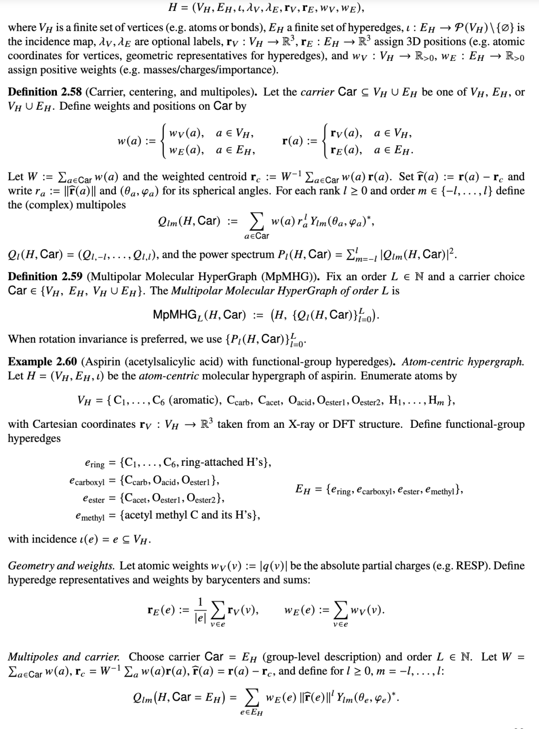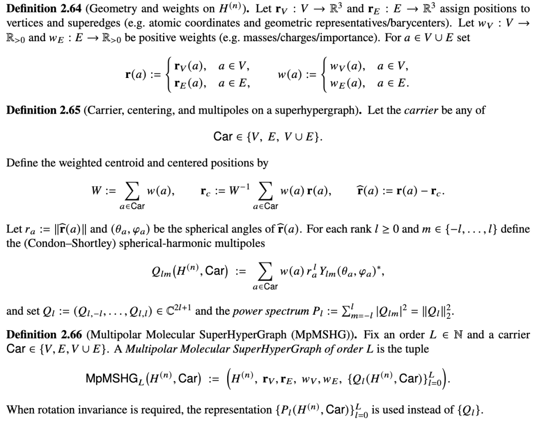 定义 2.57(具有几何结构和权重的分子超图)。具有几何结构的分子超图是一个元组