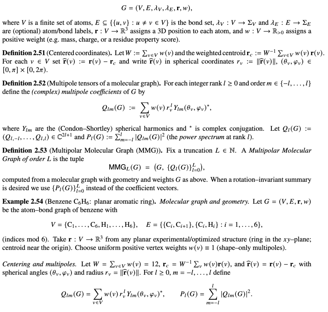 定义 2.50(具有几何结构和权重的分子图)。具有几何结构的分子图是一个元组