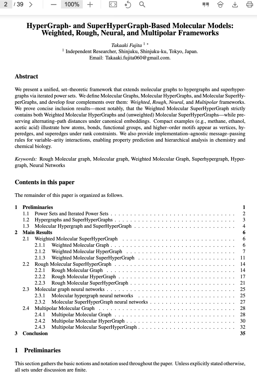 在本文中,我们研究了用于分子图、分子超图和分子超超图的加权、粗糙、神经和多极框架。在未来,我们期望研究将在本文所处理的图概念的扩展方面取得进展,包括融合模糊图 [58–60]、直觉模糊图 [61–63]、中智图 [64–66]、双向图 [67–69]、四划分中智图 [70–73]、五划分中智图 [74, 75] 以及胎盘生成图 [76–78]。