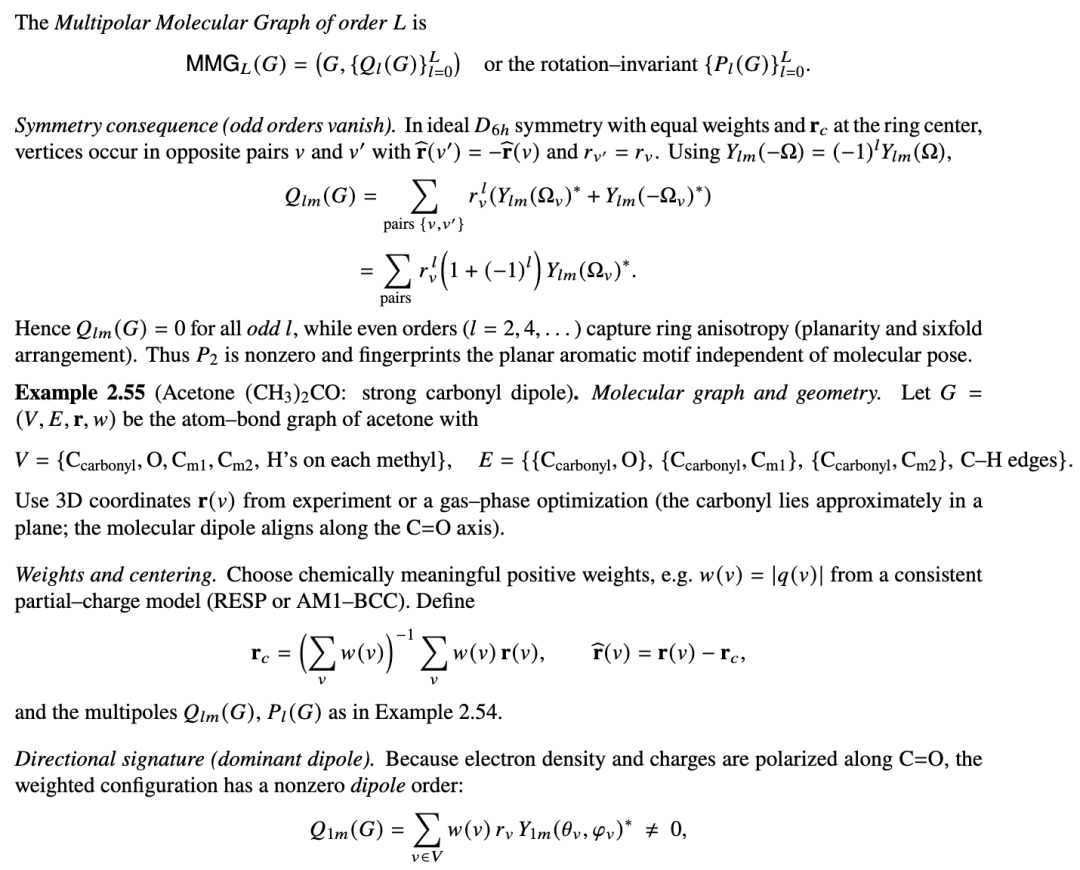 多极分子图是结合了球谐多极系数的分子图,允许以数学上严谨的方式表示原子位置和权重,从而产生旋转不变的分子形状描述符。