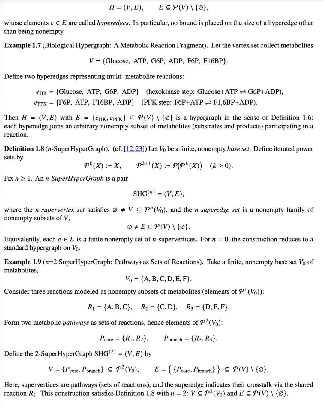 定义 1.6(超图)。[7, 22] 给定一个有限顶点集 VV,超图是一个二元组
