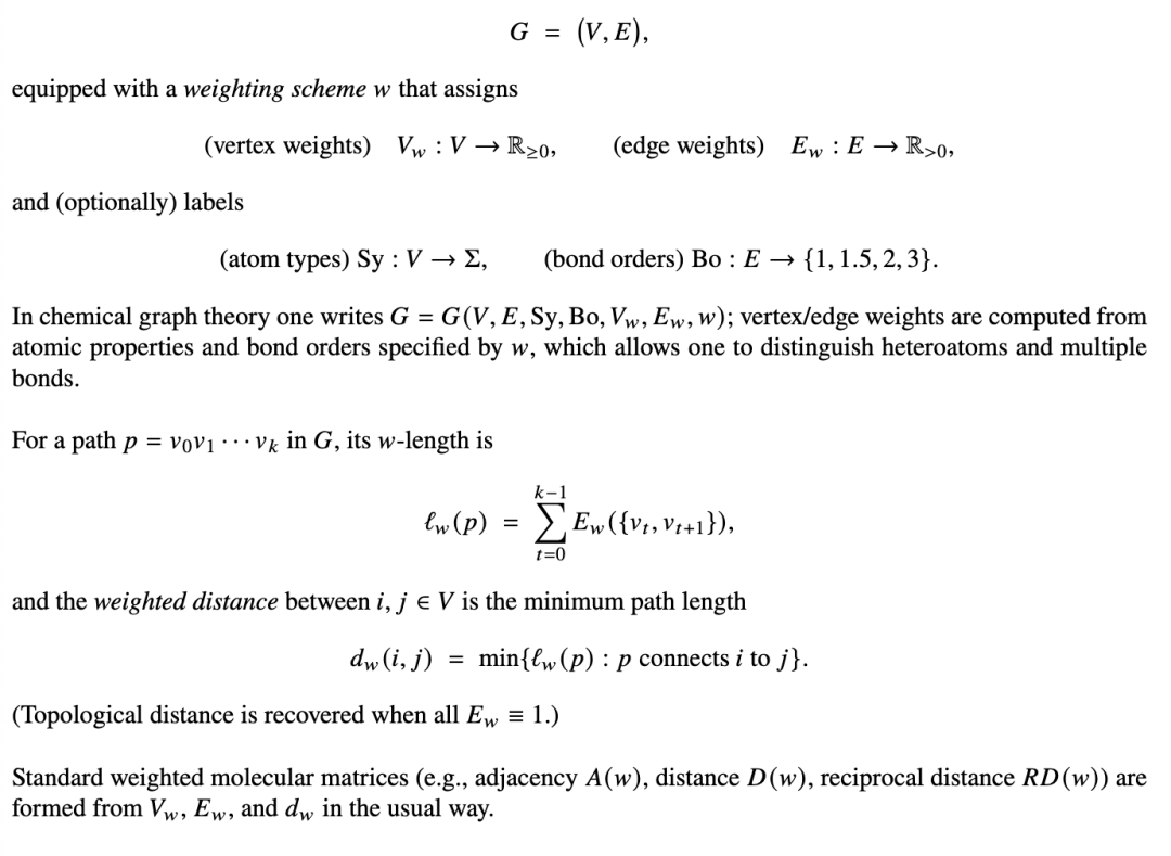 加权分子图是一种分子图,其中顶点和边分别表示原子和键,每个都被赋予捕捉化学性质的数值权重(参见 [34–39])。