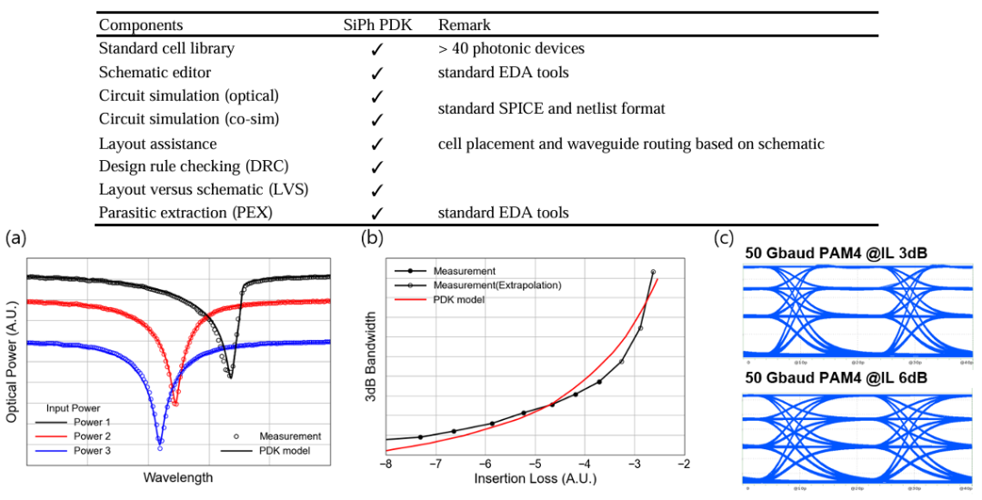 为推动 300-mm 硅光子平台的产业化应用,三星配套开发了符合代工厂标准的全功能 PDK,该 PDK 与行业标准电子设计自动化(EDA)工具深度集成,覆盖光子集成电路设计、仿真、验证全流程,为客户提供了从器件设计到晶圆制造的一站式支撑,是平台实现规模化应用的核心保障。