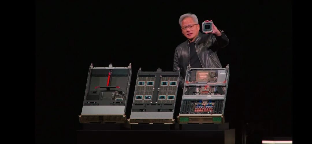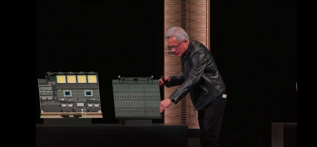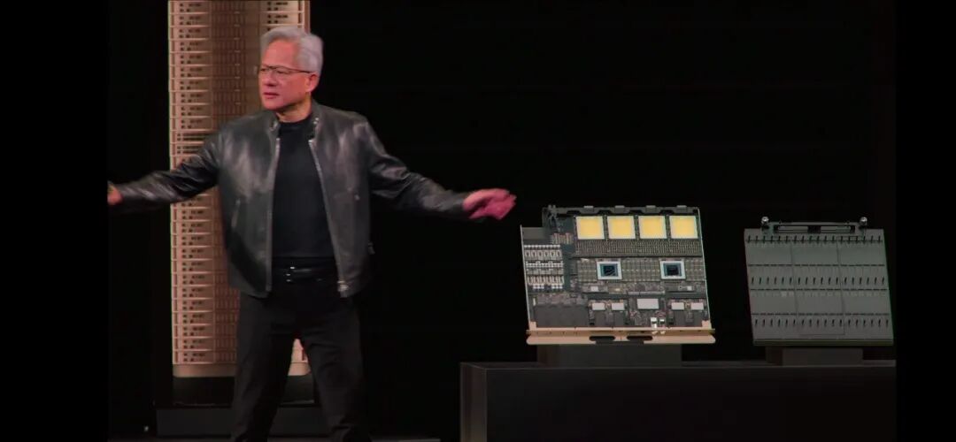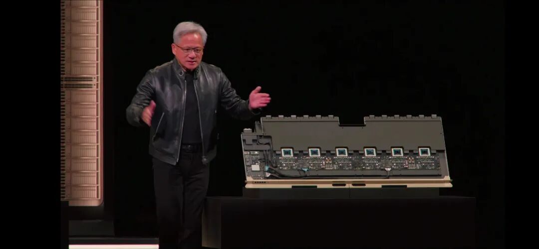 ◆垂直安装在Kyber中背板的Compute Tray,以及实现144个GPU互连的交换背板,同样是垂直放置。