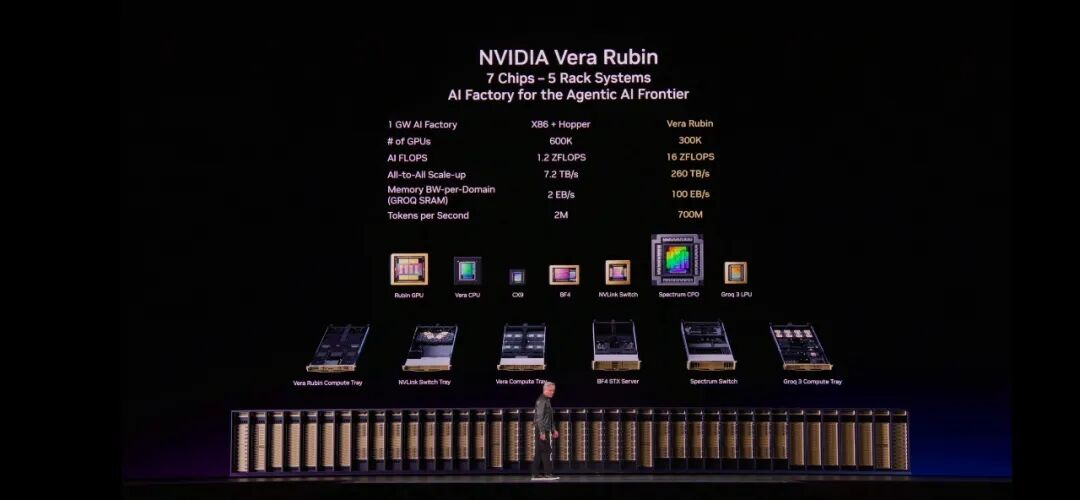 ◆Vera Rubin总结:全栈计算的代际飞跃,包含7 款突破性芯片、5 个机架级系统、1 台面向智能体 AI 的革命性超级计算机。该平台还包括全新的英伟达 Vera CPU 与 BlueField-4 STX 存储架构。