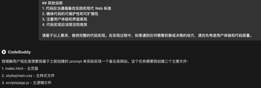 这里为了不占用过多的篇幅,我只保留了 prompt 的结构,完整版可以到仓库看(https://github.com/co-pine/codebuddy-todolist-demo/blob/main/prompt.md)。
