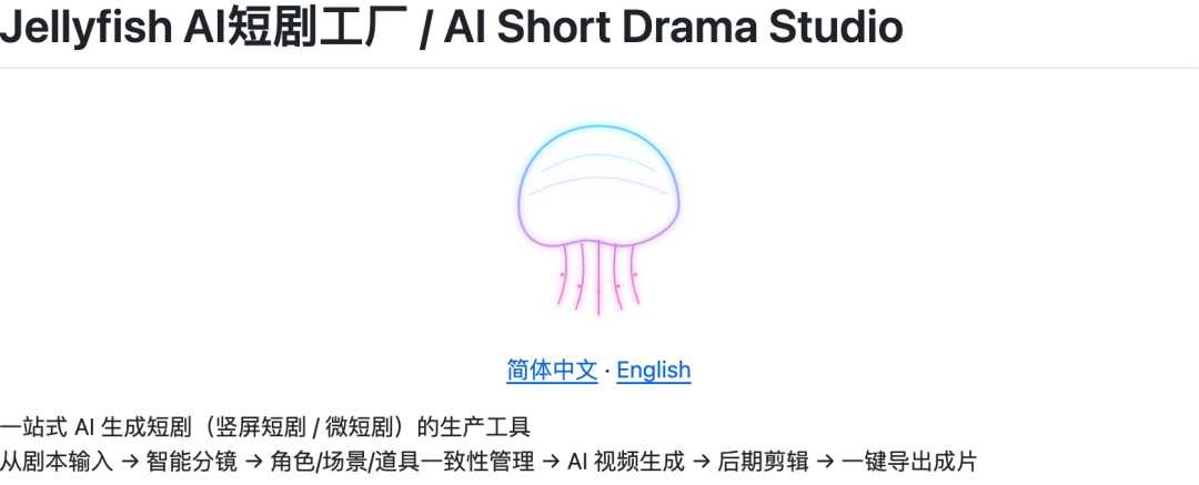 Jellyfish(水母) 是一款开源的 AI短剧/漫剧一站式生产工具。