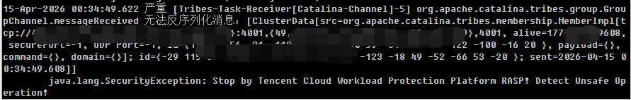 Apache 官方在 2026 年 3 月 13 日发布了针对CVE-2026-29146的修复补丁,推出了Apache Tomcat 9.0.116、10.1.53、11.0.20,但是由于代码重构疏漏,集群通信中解密失败的消息仍被无条件转发至 Java 反序列化层,反而引入了更为严重的未授权 RCE 漏洞 CVE-2026-34486。由于没有任何类过滤,攻击者只需能访问集群监听端口(默认 4000),无需任何认证,发送一个包含恶意序列化对象的 Tribes 协议数据包即可触发未授权远程代码执行。