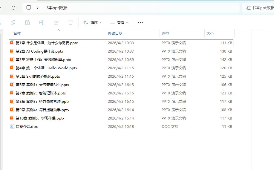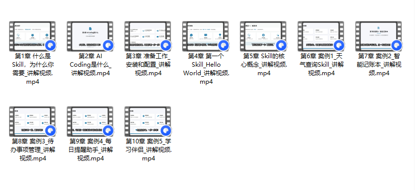 内容:什么是Skill → 怎么装ClaudeCode → 做一个HelloWorld → 5个实用案例
