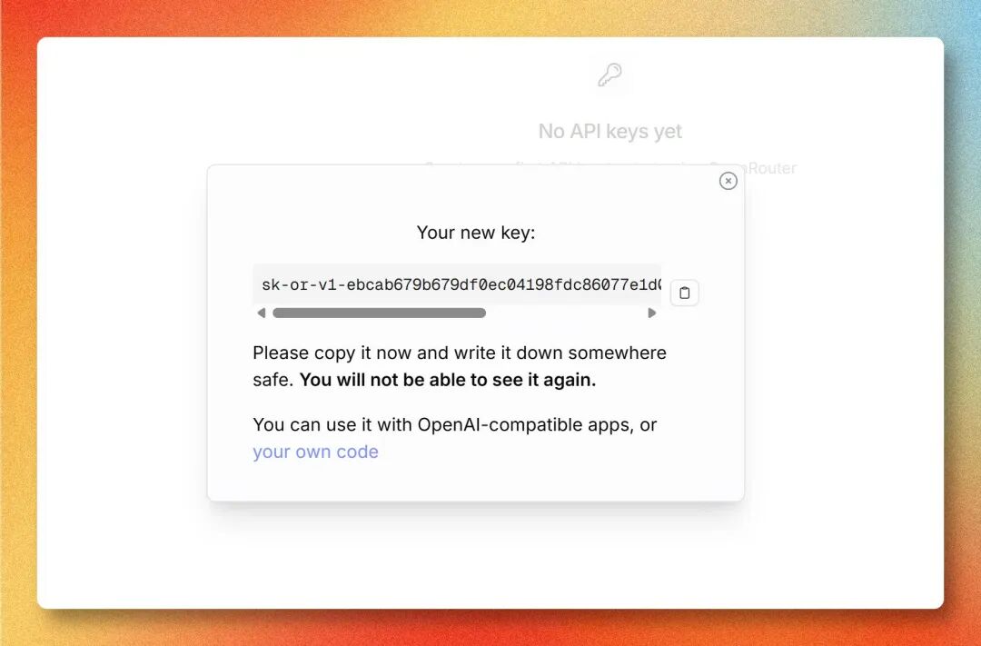 Key 只显示一次,立刻复制保存好: