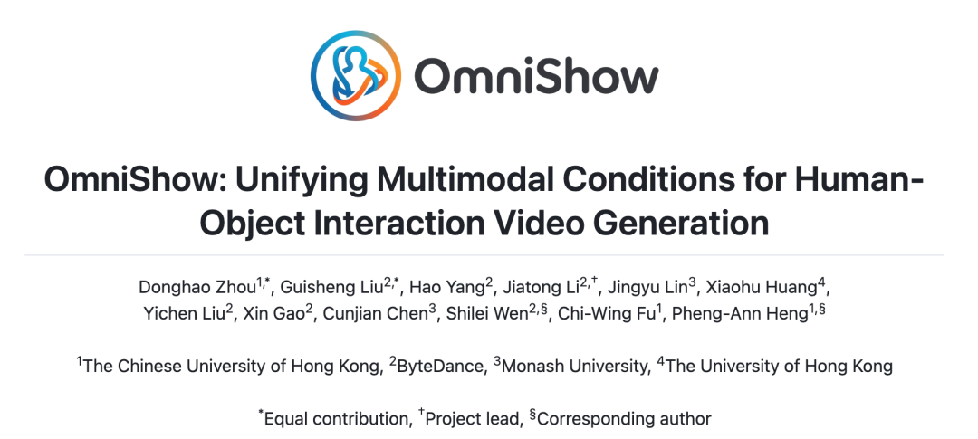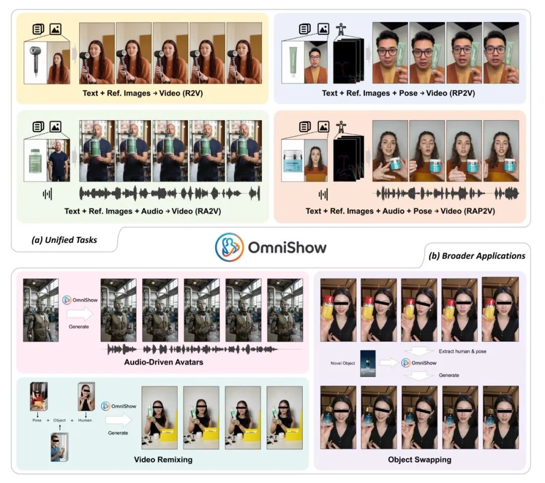 最近字节跳动、香港中文大学等联合开源的 OmniShow,直接把视频生成的玩法提升到了新高度(开源领域)。