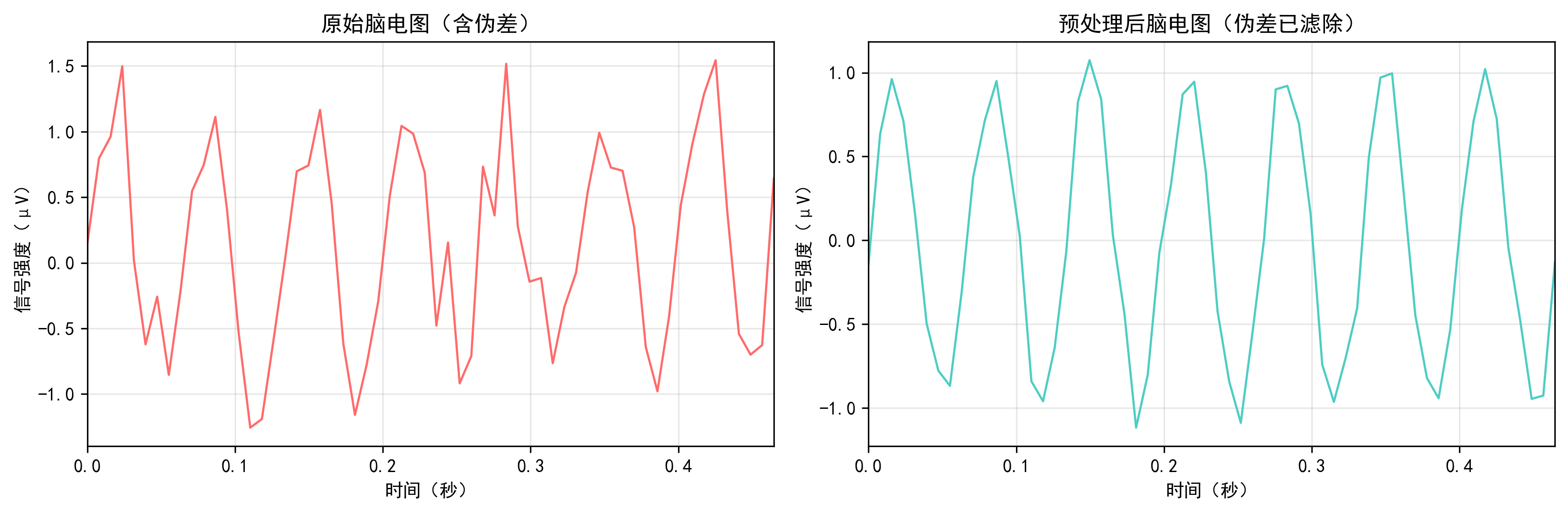 plt.xlabel("时间点"); plt.ylabel("信号强度(μV)"); plt.grid(alpha=0.3)