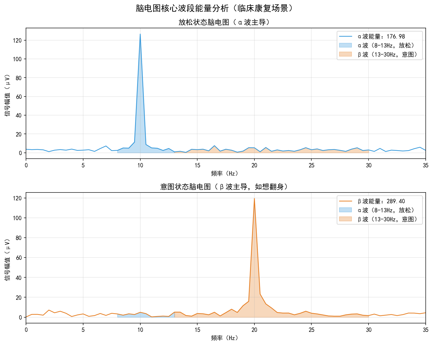 # 2.2 频域特征:α波(8-13Hz)能量、β波(13-30Hz)能量(临床脑电节律分析核心)