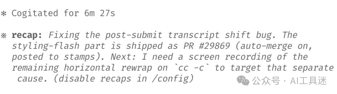 CLI 中加入了专注模式,它会隐藏所有中间步骤,只专注于最终结果。新模型已经达到了这样一个程度,我们通常信任它会运行正确的命令并进行正确的编辑,只需要查看最终结果。