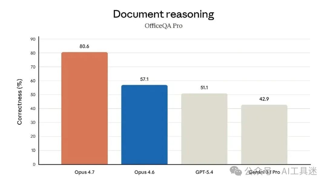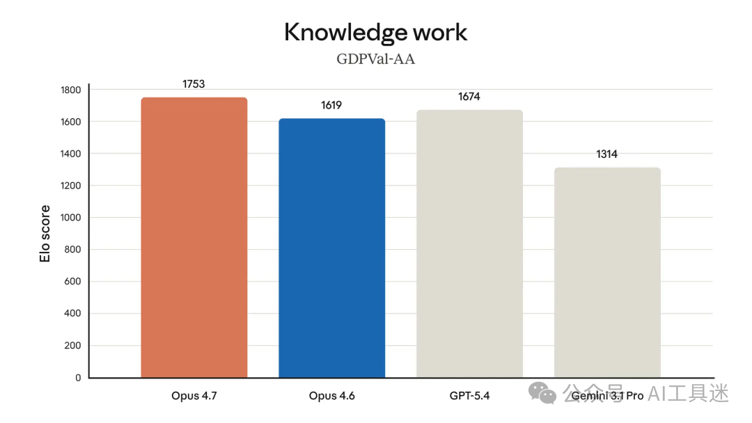 该模型还拥有明显更佳的视觉效果:它能够识别更高分辨率的图像,完成专业任务时,更具品味和创造力,能够制作出更高质量的界面、幻灯片和文档。而且,尽管它的功能不如刚公布的最强模型 Claude Mythos Preview 全面,但在多项基准测试中,它的表现都优于 Opus 4.6: