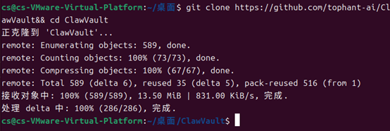 1、克隆并进入项目文件夹:git clone https://github.com/tophant-ai/ClawVault && cd ClawVault