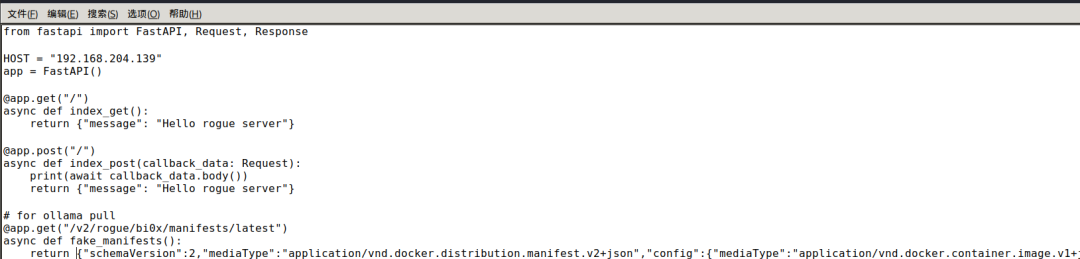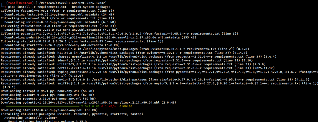 攻击者 ——> 访问 Ollama API ——> POST /api/pull ——> 恶意 manifest ——> 路径遍历 ——> 任意文件写入 ——> 系统配置文件篡改 ——> 远程代码执行Step 1:使用Docker构建漏洞环境