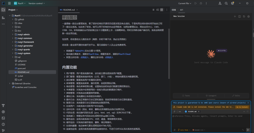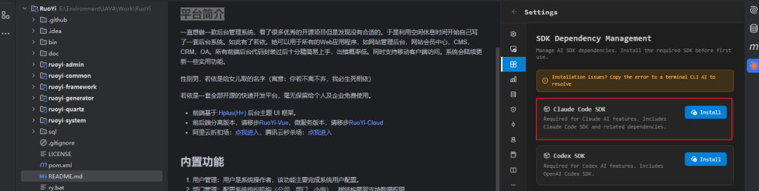 IDEA全称IntelliJ IDEA,它是JAVA编程语言的集成开发环境,IntelliJ在业界被公认为最好的Java开发工具,尤其在智能代码助手、代码自动提示、重构、JavaEE支持、各类版本工具(GIT、SVN等)、JUnit、CVS整合、代码分析、 创新的GUI设计等方面的功能可以说是超常的,IDEA是JetBrains公司的产品,这家公司总部位于捷克共和国的首都布拉格,开发人员以严谨著称的东欧程序员为主,它的旗舰版还支持HTML,CSS,PHP,MySQL,Python等。免费版只支持Java,Kotlin等少数语言,本篇文章主要介绍如何在IDEA中集成Claude Code,从而助力AI编程