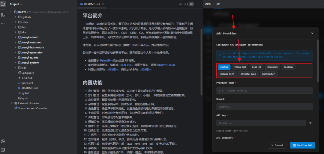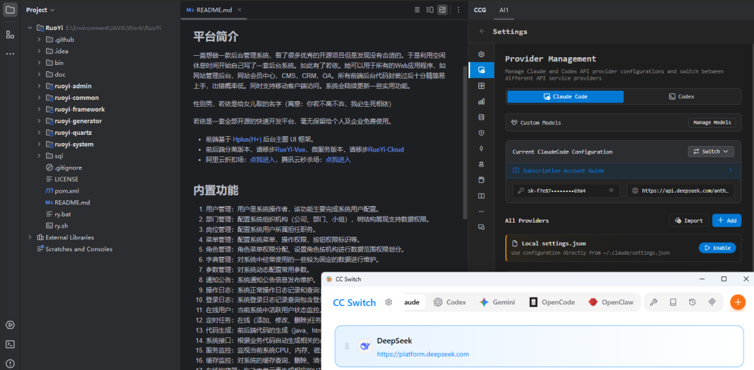 Claude Code支持模型自定义,我们这里可以使用CC-Switch来进行动态切换,而且可以动态的适配,例如: