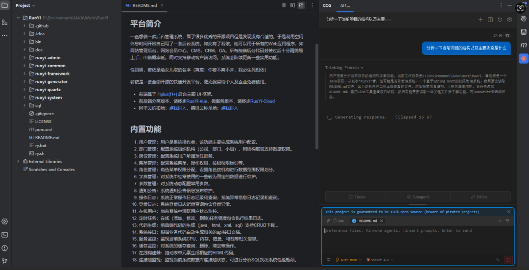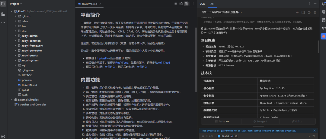 下面我们使用AI模型对当前的工程代码进行一个简要分析: