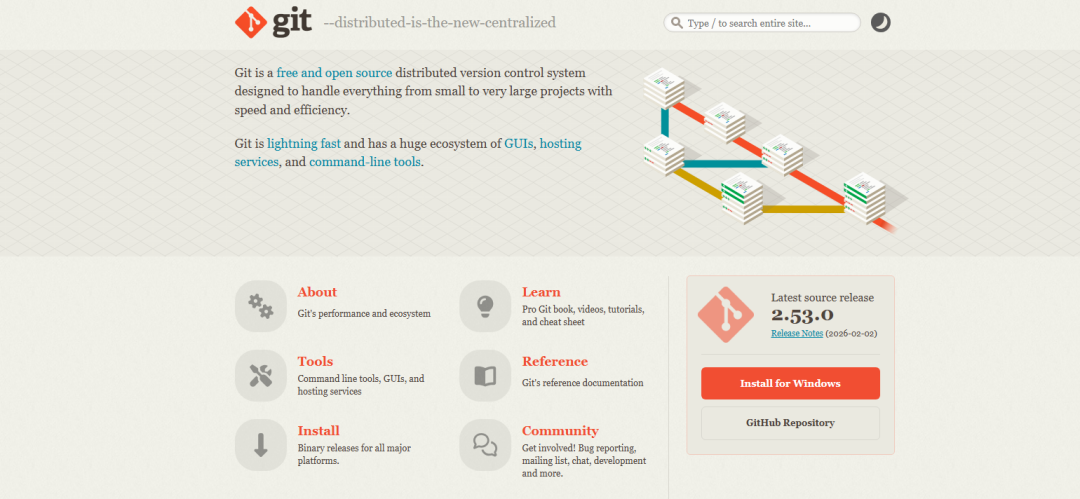 Step 1:首先访问Git官方网站下载适合的版本安装包