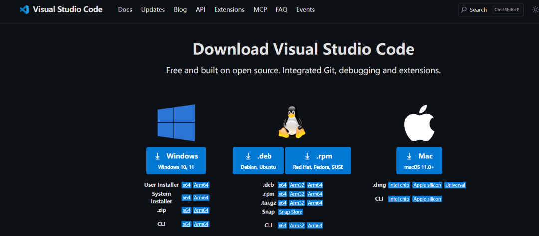 Step 1:首先访问VS Code的官网并下载对应的版本