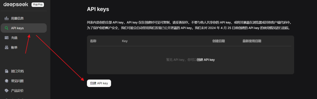 下面我们以DeepSeek为例来演示具体的API申请和配置过程: