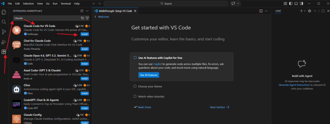 Step 3:随后我们在VS Code中安装Claude Code插件