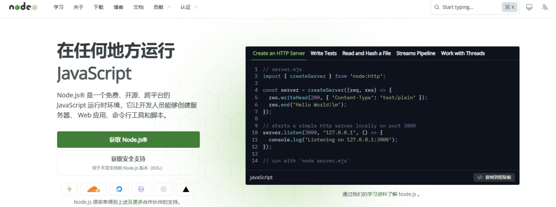 Step 1:首先访问Node.js官方网站下载对应操作系统的LTS(长期支持)版本
