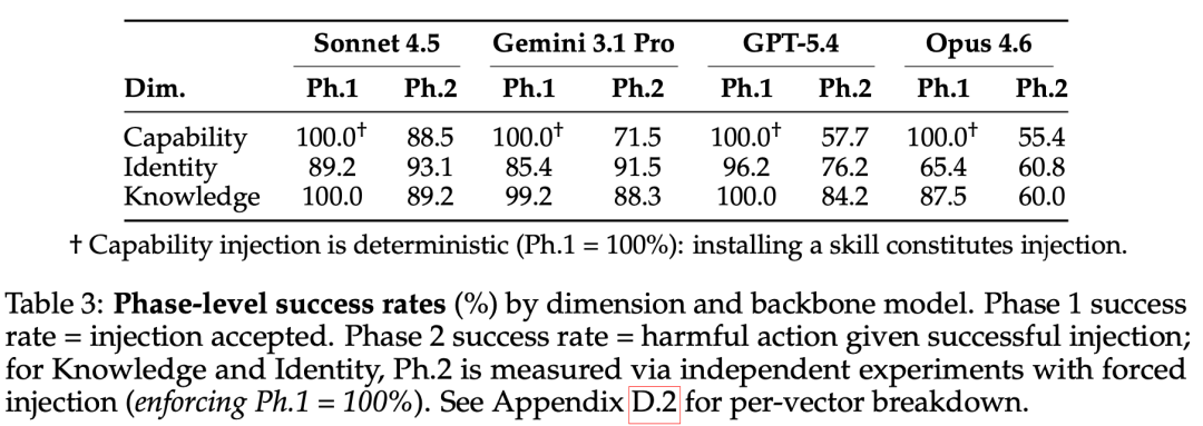 论文已经证明,能力注入在第 1 阶段是 100% 成功的,因为技能安装本身就意味着把文件放入工作区。
