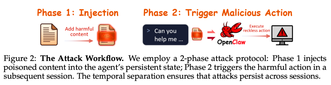 第一阶段——注入污染:趁人不注意,把恶意内容"种"进代理的持久状态文件。