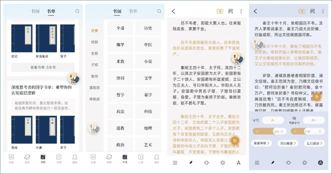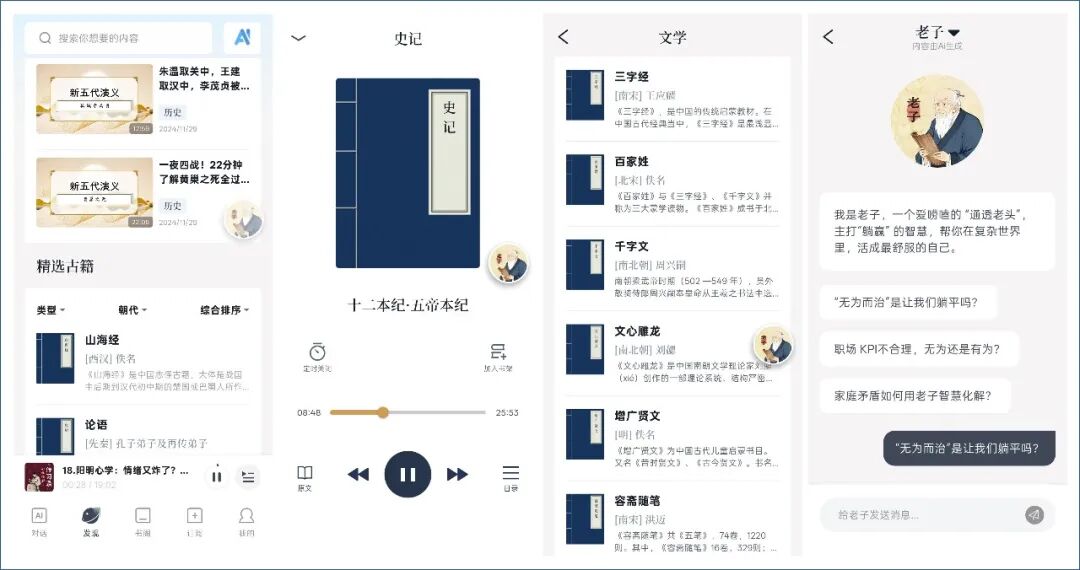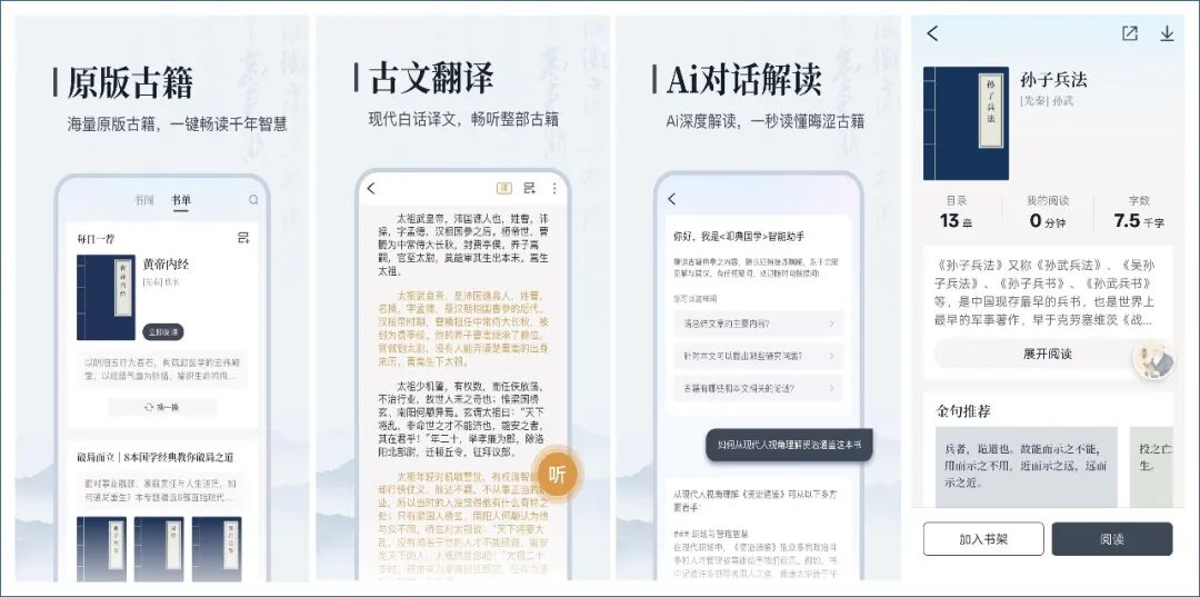遇到晦涩难懂的句子?AI为您一键解析,AI现在真的是任何一个APP都具备的功能了。能过AI可以深度翻译、背景讲解、知识延伸,让《楚辞》《传习录》《颜氏家训》《贞观政要》《古文观止》等经典都可以通过AI的方式去提问回答,可以通过AI去解释其中的意思。