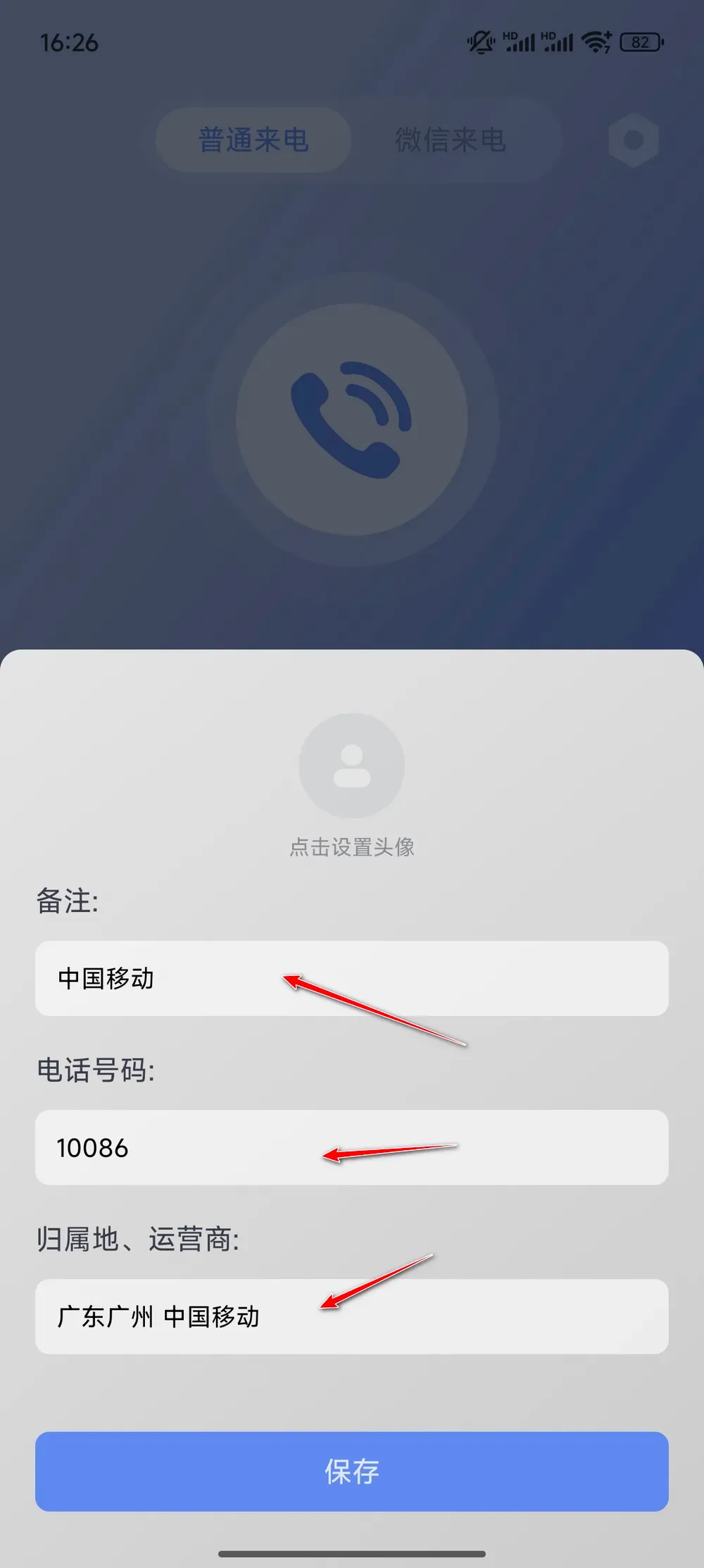 支持直接自定义,把名称,头像,电话号码设置好之后,再加一下归属地、运营商(比如 10086、本地号码),然后把铃声设置的逼真一点,基本上是个人都能看出来你是在和某某沟通了。