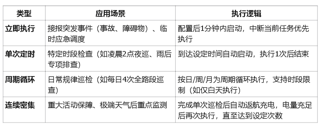 断点续飞功能:任务因电量不足、信号中断、临时避让等原因中断时,自动记录断点位置,充电/恢复后从断点继续执行,确保巡检无遗漏。