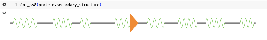 secondary_structure属性包含二级结构的表示。在高级别的分类中,我们可以将每个氨基酸分为三类:α螺旋、β折叠和卷曲,我们可以在前面的3D可视化中看到。