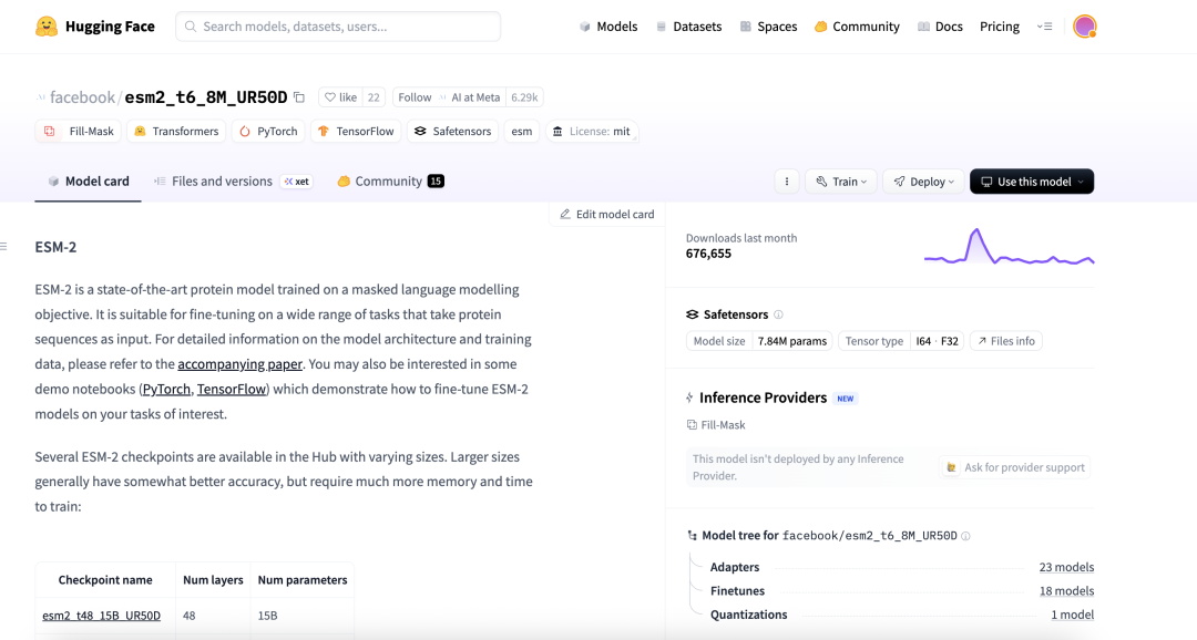 ESM-2 是 Meta AI 推出的蛋白质语言模型,基于约 6500 万条天然序列训练的大型 Transformer,可直接从一级序列预测近原子分辨率的三维结构,性能与 AlphaFold 旗鼓相当。