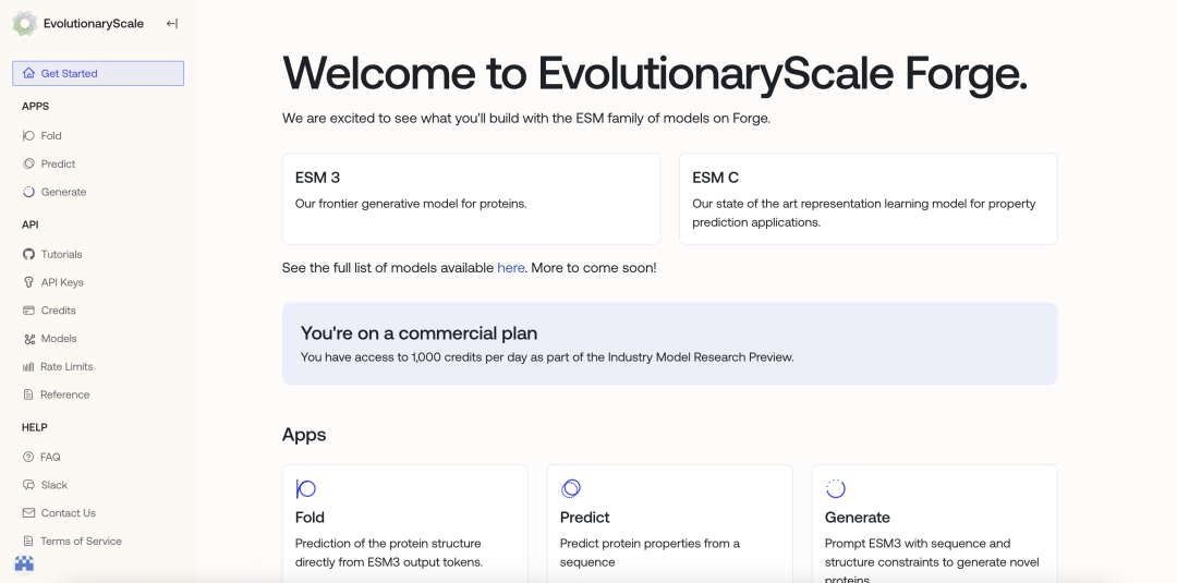 图中为Esm的官网 www.evolutionaryscale.ai 读者需要自行注册