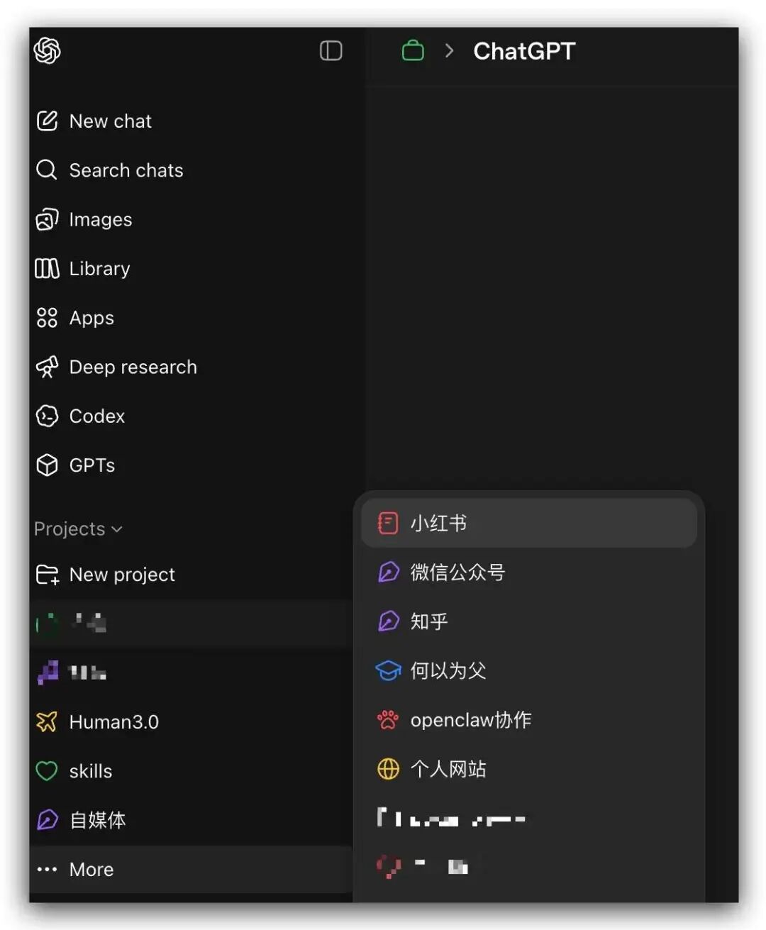 这是我现在的 AI Project 列表。我会把工作、公众号、知乎、个人网站、OpenClaw协作、HUMAN3.0、育儿等长期任务分开管理。这样每次继续工作时,不需要重新解释背景,也不会把不同项目的上下文混在一起