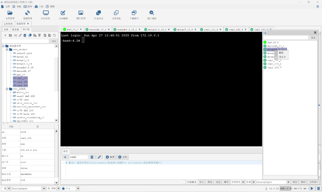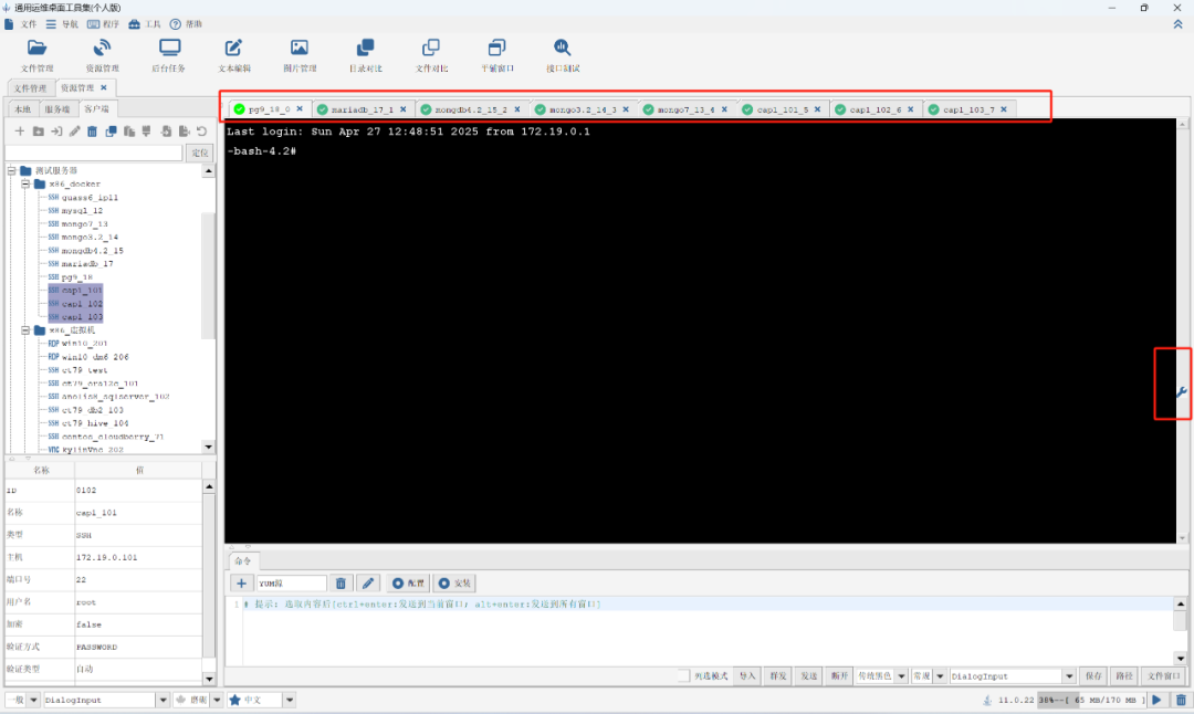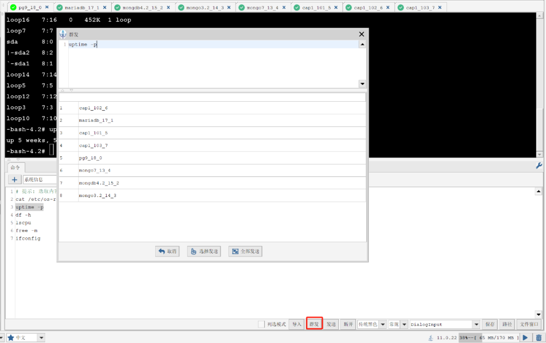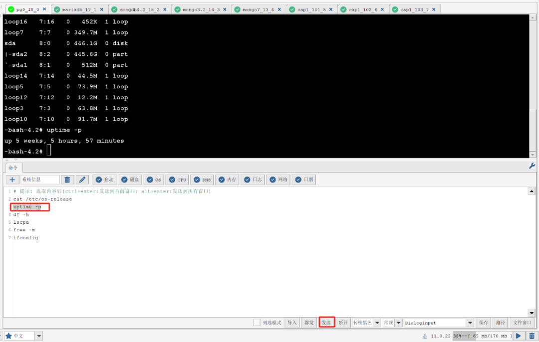 在窗口下方的命令框中,大家可以把自己常用的命令全部粘贴进去。选择合适的命令后,使用快捷键ctrl+enter或者点击发送按钮,文本就会被发送到当前窗口。